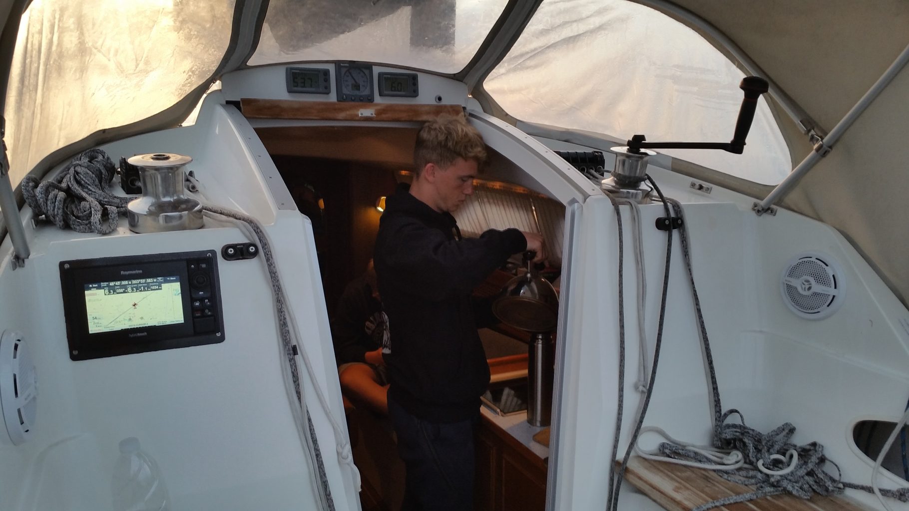 - Ziemlich viel Wasser in der Bilge. Die Wellen sind wohl ins Cockpit eingestiegen und haben ihren Weg ins Boot gefunden.