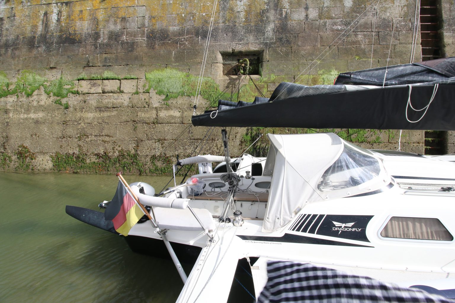 - Heftiger Schaden am Bug durch Kollisionen mit dem Steg. Allerdings kein Vergleich mit anderen Booten links und rechts von Trinity.