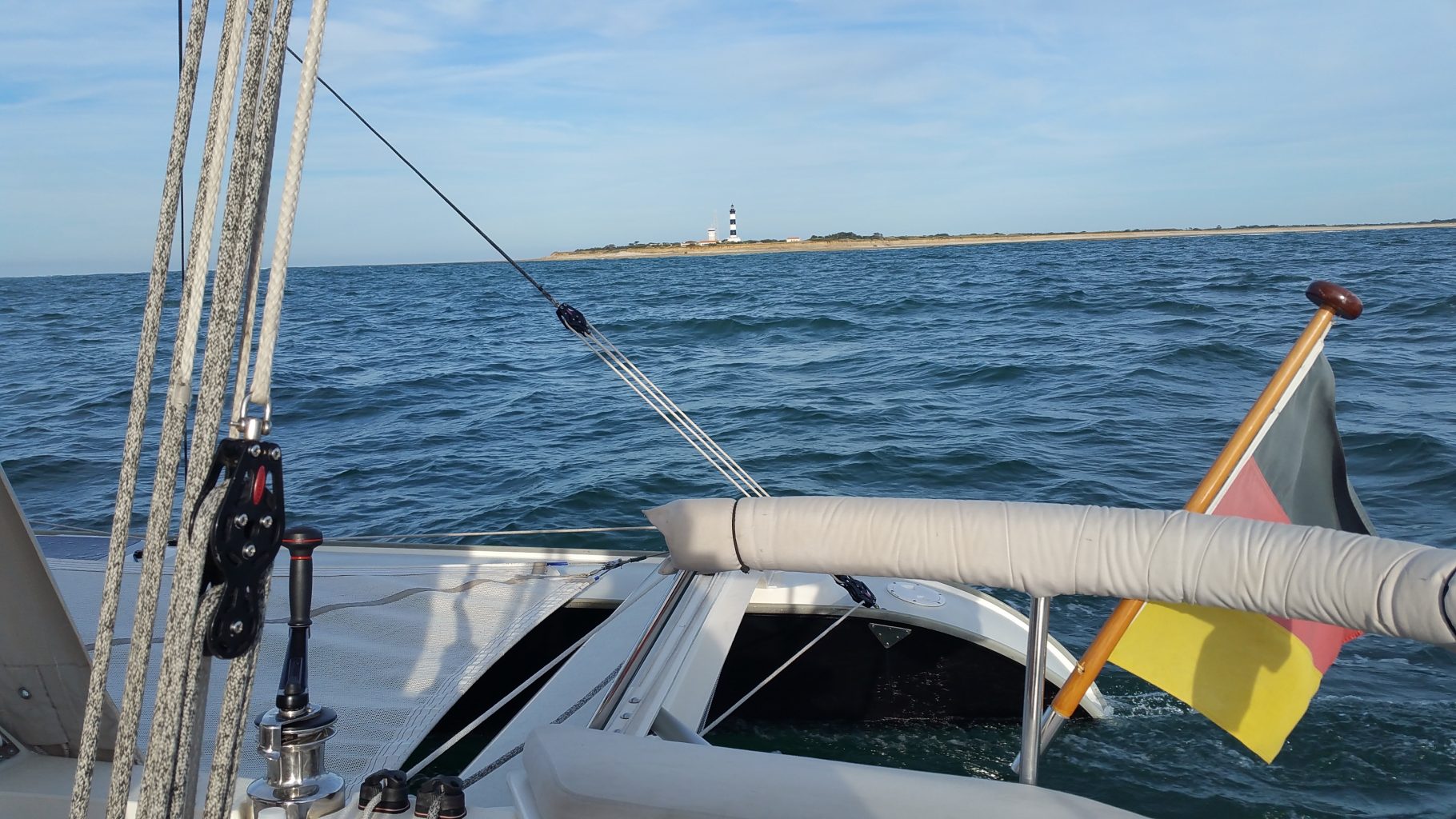 Pünktlich um 9:00 legen wir ab. Im Vorhafen setzen wir schon die Segel. Mit 5-6 Knoten Fahrt geht es voran. Weiter draußen können wir den Spinnaker setzen und legen nochmal auf 8-9 Knoten zu. Bis Den Helder sind es gut 53 Meilen. Dort zwischen dem Festland und der Insel Texel ist die Einfahrt in die Niederländische Wadenzee. Mal sehen, ob wir es bis 16:00 schaffen.