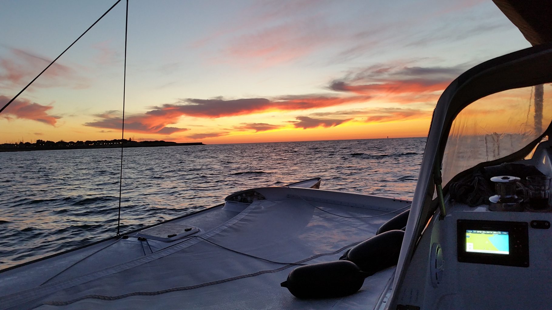Als wir die Schleuse Kornwerderzand passieren ist es schon dunkel. Rund um uns herum leuchten jede Menge rote, grüne und weisse Lichter. Wir müssen dem engen Boontjes Fahrwasser zwischen dem Festland und der großen Sandbank Kornwerderzand folgen und es ist nicht ganz einfach die beleuchteten Tonnen unseres Fahrwassers zu erkennen. Die Müdigkeit nach 14 Stunden auf dem Wasser tut ihr übriges. Wir sind froh dass wir den Kartenplotter im Cockpit haben.