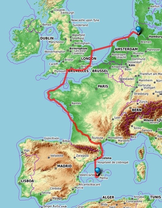 Im September 2016 habe ich mir einen lange gehegten Traum erfüllt. Ich bin jetzt stolzer Besitzer von Trinity, einem Trimaran vom Typ Dragonfly 920 extreme. Trinity hatte bis April 2017 noch einen Liegeplatz auf Mallorca und wurde dann über mehrere Etappen über das Mittelmeer, durch Frankreich, die Biskaya, den Englischen Kanal und die Nordsee nach Deutschland überführt .