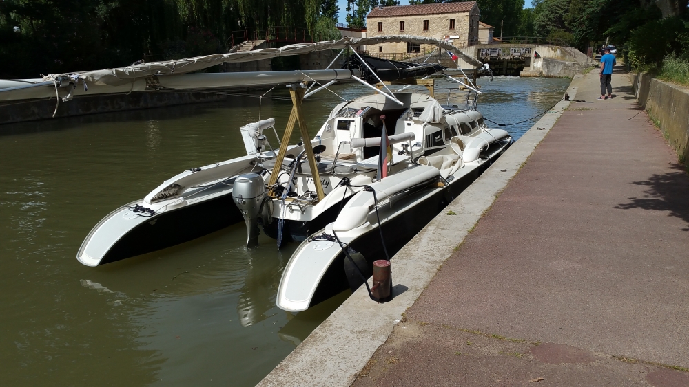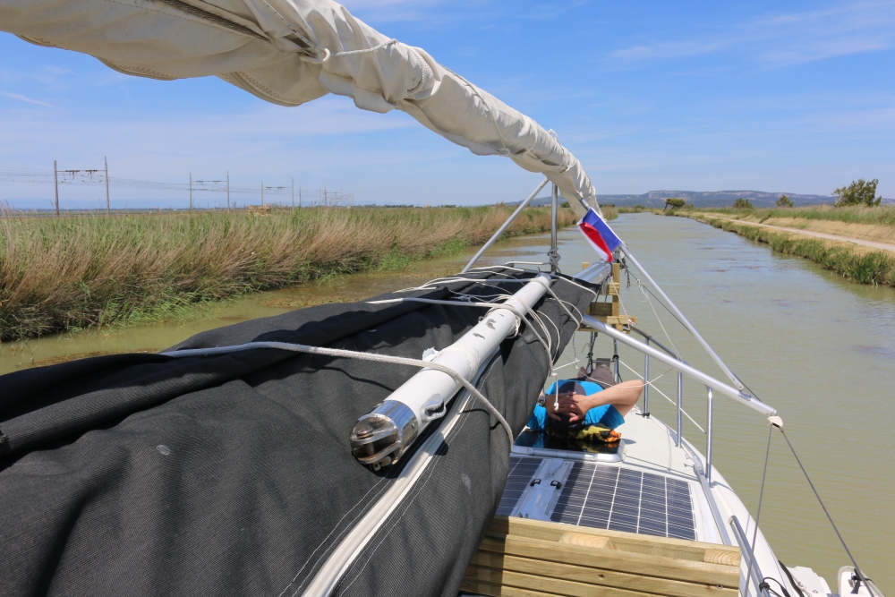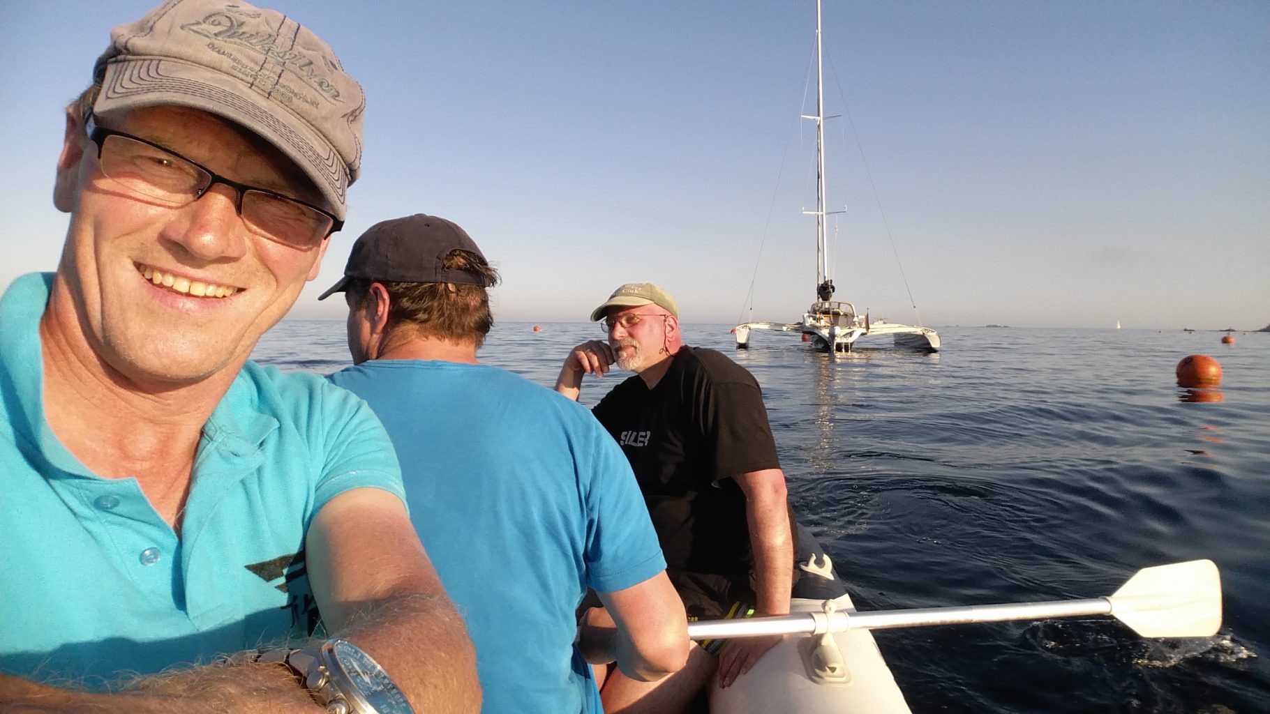 Am Abend, gegen 20Uhr läuft die Heavenly Twins und noch ein weiteres Boot, dass den Hafen am Mittag verlassen hat wieder ein. Ich frage beim Katamaranskipper nach, was der Grund sei. Der erzählt, dass es sehr windig war, und sich 5 Meilen vor Port Medoc eine so unangenehme kurze und steile Welle aufgebaut hat, dass seine Schrauben aus dem Wasser kamen. Als dann auch noch sein betagte Fock einmal quer durchgerissen ist, musste er umkehren. Für den nächsten Tag ist eigentlich das gleiche Wetter angesagt. Mir wird mulmig. Kurze steile Welle unter Motor mag Trinity gar nicht!