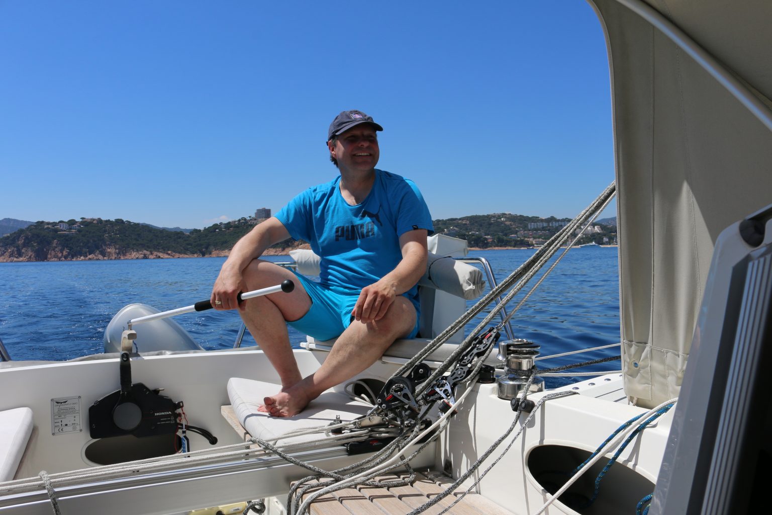 Was ist passiert? Lage checken. Der Spinnaker flatter querab und der Bugspriet zeigt senkrecht nach oben. Einen der neuen Ronstan Blöcke für den Niederholer hat es zerissen. So ein Mist. Welche Bruchlast hatte der noch? Das muß ich checken. Aber erstmal gilt es, dass flatternde Tuch, welches da am Mast zerrt zu bergen. Paul schafft es erst als ich ordentlich abfalle und dafür sorge, dass das Segel im Windschatten des Großsegels zusammenfällt.