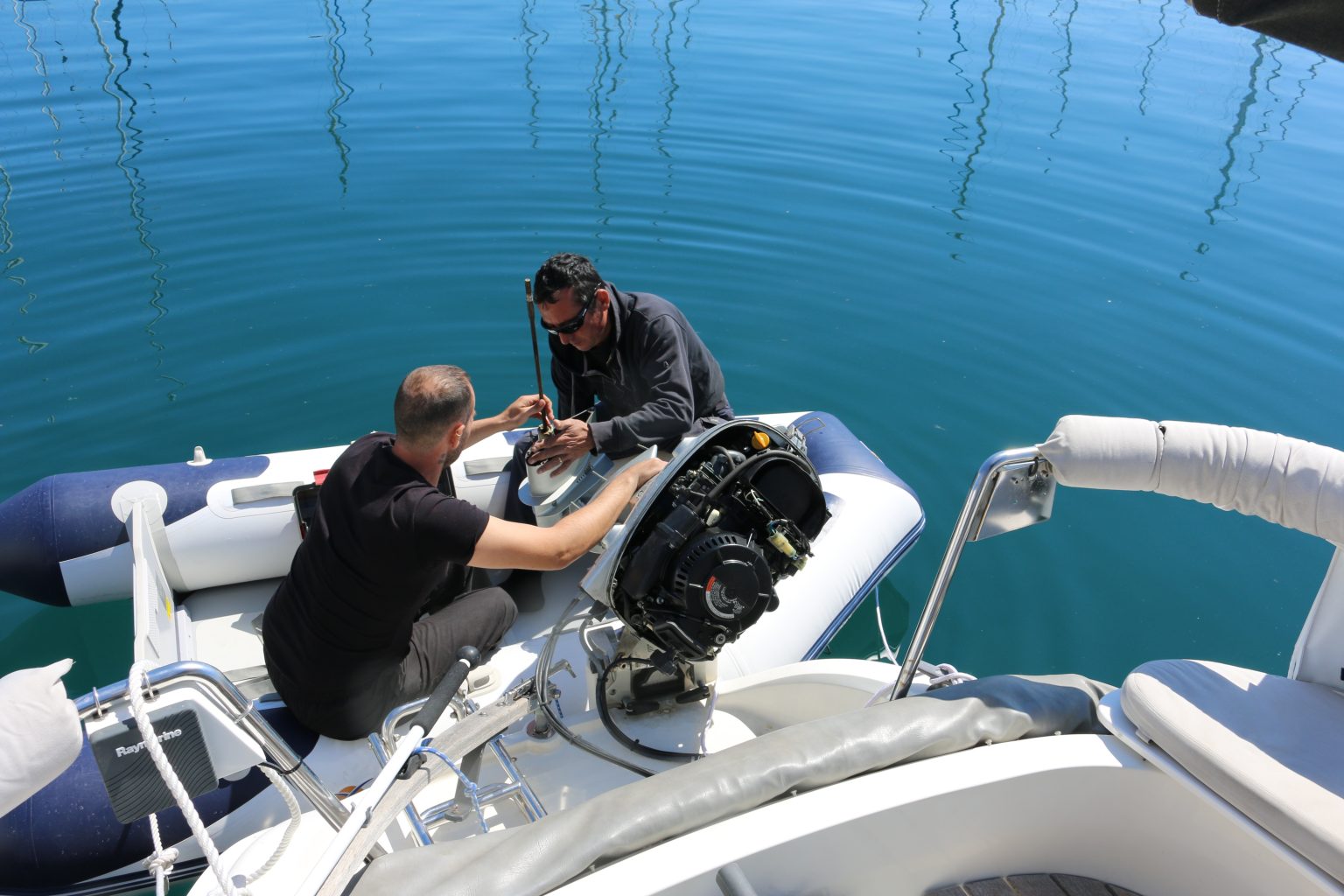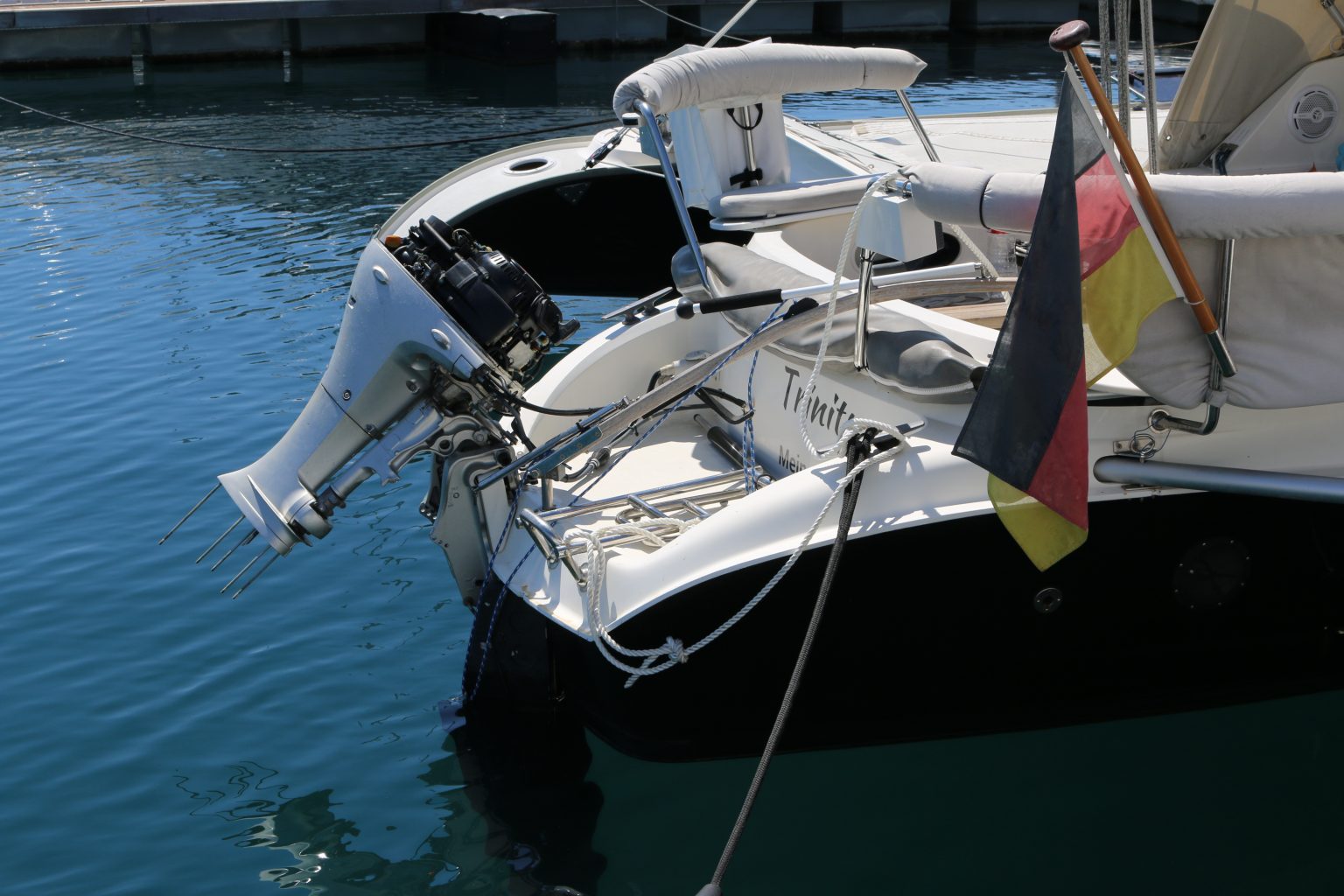 Am nächsten Morgen lerne ich am Empfang der Marina Claudia kennen. Sie spricht Deutsch und hilft mir einen Servicetechniker zu finden, der auch nach einer halben Stunde da ist, um sich den Motor anzusehen. Es ist wohl wirklich der Impeller. Er montiert den unteren Teil des Außenborders ab und verspricht mir, dass er bis zum Abend einen neuen Impeller eingebaut hat und der Motor wieder läuft.